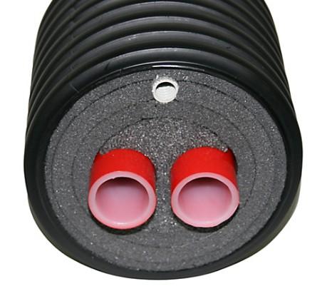 Altech præ-isoleret fjernvarme dobbelt pex rør 22x3,0mm. Inkl. 16 mm trækrør. Rulle a 25 mtr.
