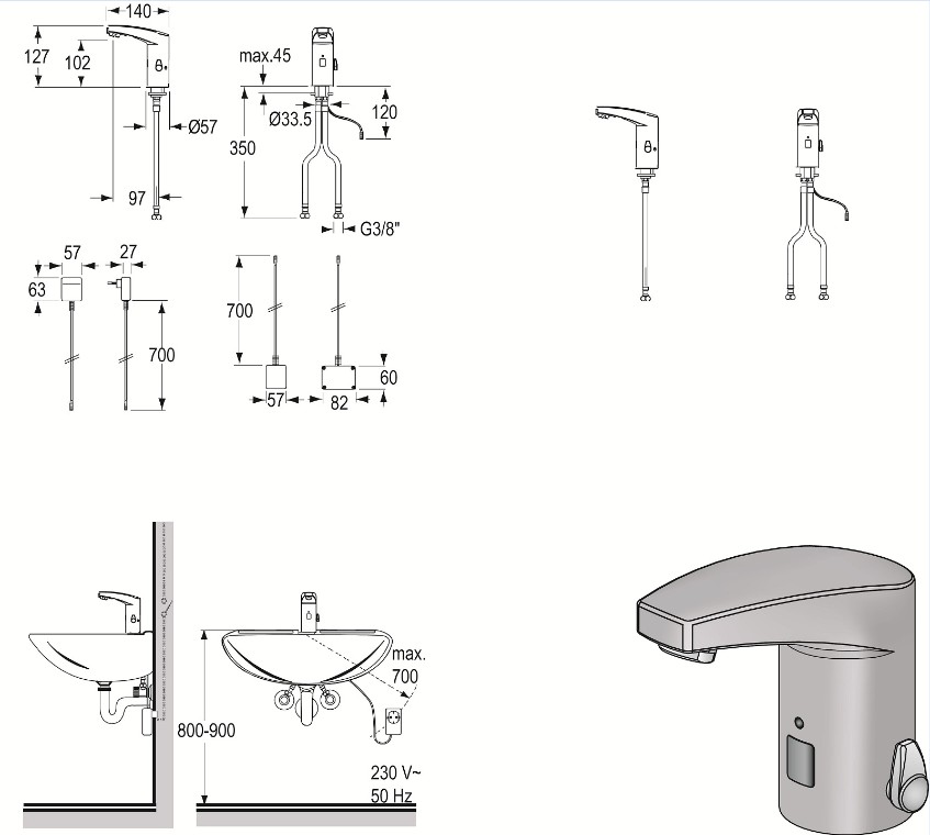 Vandhanen er med mange indstilningsmuligheder. Bl.a. afstand, vandmængde, tvangsskylning hver 24 time (Legionella-sikring), pausefunktion ved rengøring af vask m.m.
