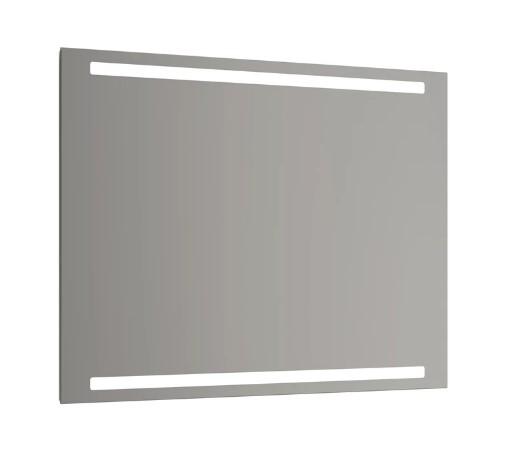 Spejl med aflange, integrerede lysfelter. Giver udover god spejlbelysning en spændende lyseffekt over spejlet og flot belysning ned over vasken.