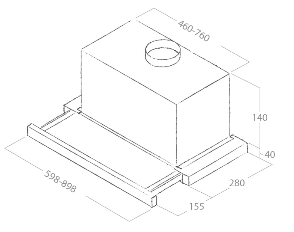 Udtræksemhætte med intern motor.
