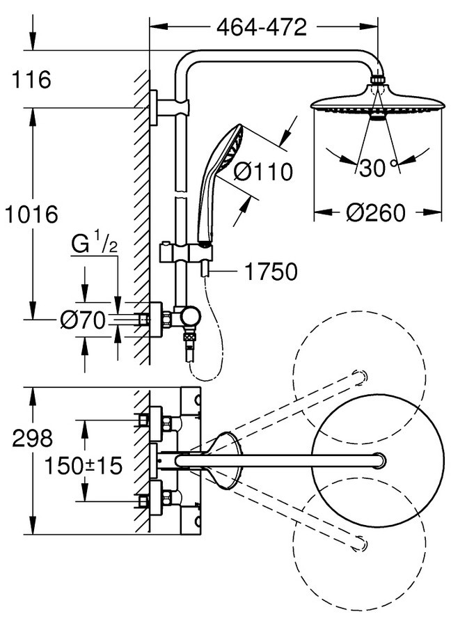 Grohe Euphoria System 260 Brusesystem med termostat til vægmontering