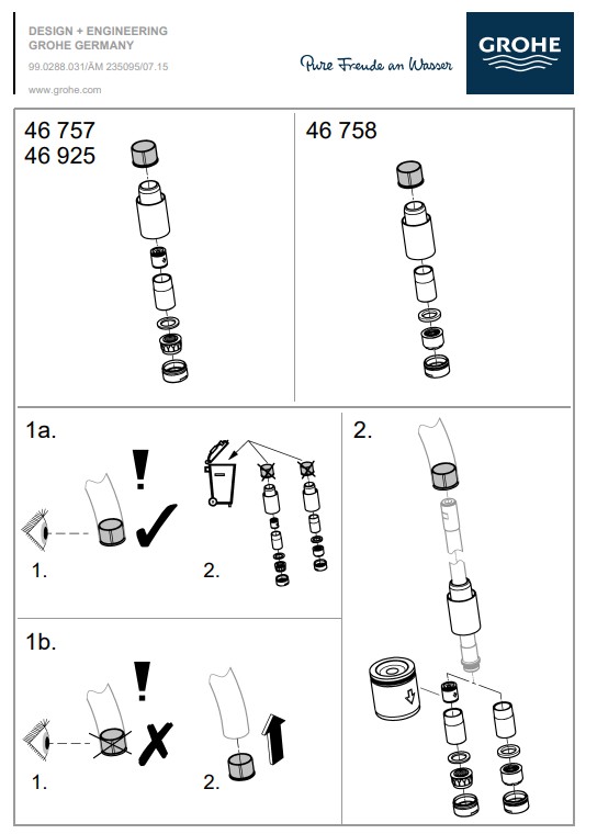 Grohe udtrækstud i krom - Passer til bl.a. Grohe Minta med vvs nr: 705787104 og Grohe nr: 32918000. Passer også til flere andre modeller.