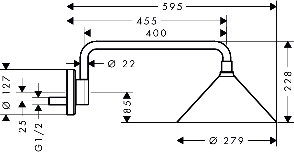 AXOR 240 2jet hovedbruser m/bruserbøjning