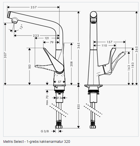 Hansgrohe Metris Select køkkenarmatur m/select knap - Krom