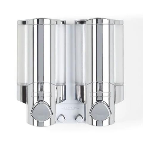 Gør dit bad flottere, og tilføj en følelse af spa og wellness med elegante sæbedispensere til væg - og slip af med grimme og besværlige shampoo/body wash-flasker. Med 2 individuelle beholdere i denne væghængte sæbedispenser, er der plads til både shampoo og body wash. Mellem de to beholdere, er to knager til vaskehandsker og skraber. Der medfølger små klistermærker med Shampoo/Balsam/Shower gel/Soap/Lotion, til at sætte på dispenseren.
