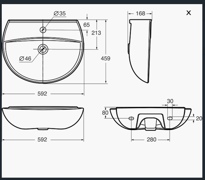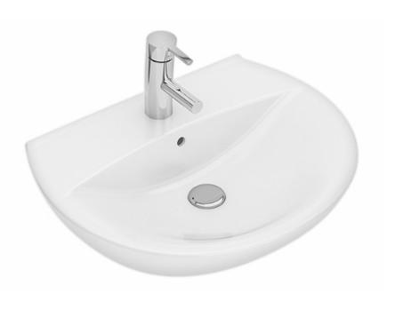 Håndvask med afsætningsplads på bagerste del af vasken. Fremstilles også uden overløbshul, hvilket giver enklere rengøring. Monteres med bolte.