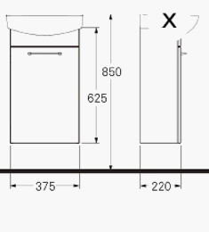 I møbelpakken indgår håndvask med hanehul på højre eller venstre side og fabriksmonteret underskab med en flytbar hylde.