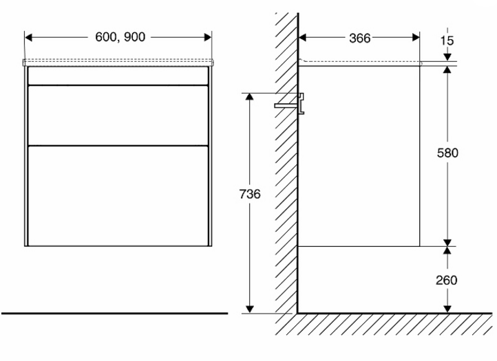 Komplet møbelpakke med smallere underskab, hvid. To softclose lukkende skuffer og Ifö Sense håndvask. En hylde, forberedt for VVS-installation uden extra udskæring. Lige Greb i aluminium indgår. Indretningspakke, vandlås og justerbare ophængningsbeslag indgår. Håndvasken har god afstillingsplads og forhøjet bagkant. Blandingsbatteri indgår ikke. Mål: H: 595 B: 951 D: 375 |