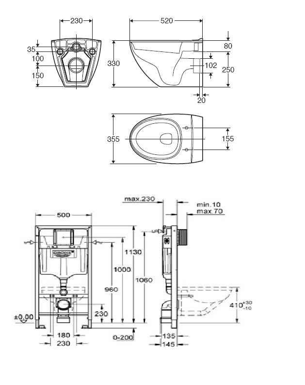 • Grohe frontbetjent indbygningscisterne på 113 cm