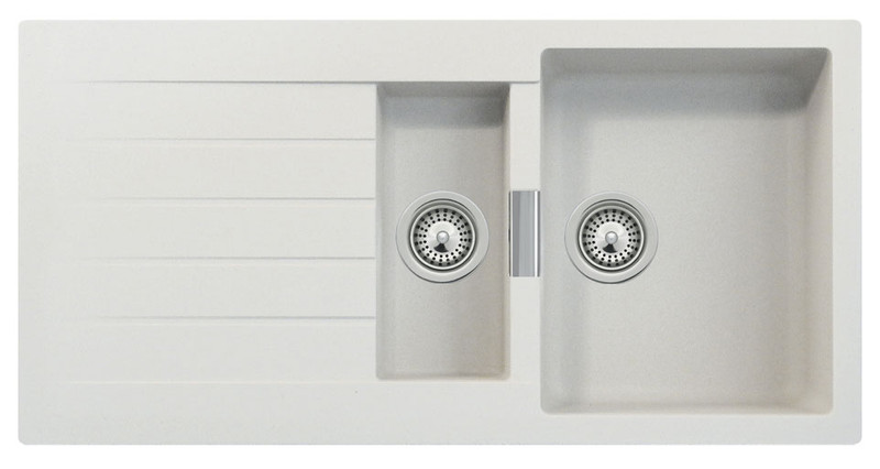 Cristalite - Har sat en ny standard for komposit vaske. Materialet er tre gange hårdere end almindelig granit, suger ikke farve til sig, er let at tørre af og derfor meget hygiejnisk.IntraGraniteCristalite PRID150: Køkkenvask i granit materiale. Vask i Cristalite med stor vask, lille kumme og afløbsbakke. Leveres med løft-op-ventil og vandlås.