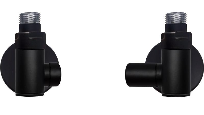 KRISS Corner Combi Manuel, ½” vinkelløbende hjørneventilsæt til kombineret central- og elvarme med manuel regulering, lakeret matsort (RAL9005). Ventilsættet er inkl. ½” tilslutningsrør og rosetter. Fremløb i højre side. Regulering skal sidde i højre side. Ikke vendbar. |