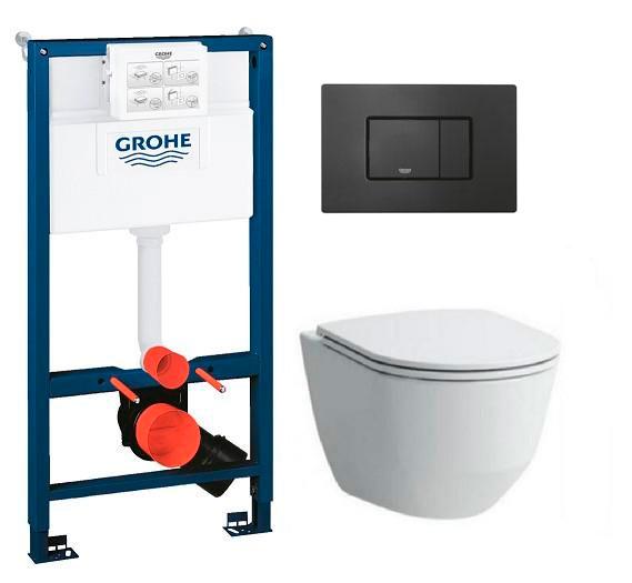 Laufen Pro LCC Rimless Compact toiletpakke inkl. mellem Grohe cisterne, mat sort betjeningsplade og sæde m/ soft-close