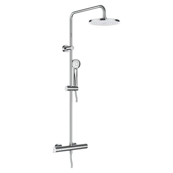 Laufen Therm 230 komplet brusesystem - Krom En elegant tilføjelse til badeværelset, som lader dig nyde et skønt brusebad i ro og mag. Laufen Therm komplet brusesystem har alt, hvad man måtte ønske sig ved et brusesystem - også en god pris. Du får både hovedbruser og håndbruser, hvor du kan veksle mellem stråletyper. Brusesystemet er udstyret med skoldningssikring og isoleret, så hverken voksne eller børn oplever at brænde sig, når de rører ved armaturet. Hele brusesystemet er forkromet, hvilket giver en flot blank overflade, som tilmed er nem at rengøre. Hovedbruseren har en diameter på Ø230mm som yder 9 L/min. Håndbruseren har en diameter på Ø80 og er udstyret med 3 forskellige stråleindstillinger og yder 8,5 L/min. Bruseslangen er 1500mm lang og fleksibel i sin udførelse. Bruserøret måler totalt 1096mm i højden målt fra midt termostat. Højden fra midt termostat til underside af hovedbruseren er 952mm. Specifikationer: