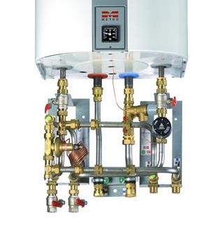 METRO system 1 type 6371 er en væghængt fjernvarmeunit til beholder samt direkte fjernvarme til rumvarme. Styring af brugsvand sker ved hjælp af indbygget termostatisk reguleringsventil og trykdifferensregulator. Styring af rumopvarmningen sker ved hjælp trykdifferensregulator. Unitten skal monteres under en beholder, som købes separat. Ex. model 110 (type 6440) eller model 160 (type 6050) beholder. Ved montering under en model 60 beholder (type6220) skal der tilkøbes koblingssæt.