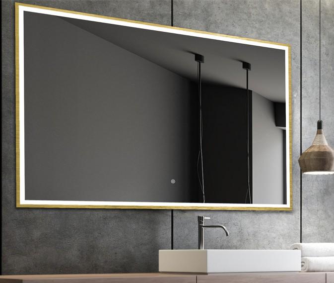 Tanja firkantet spejl m/messing ramme, integreret LED lys og touch - 100 cm Spejlet leveres med stikprop klar til brug inkl ophæng.