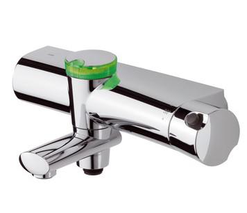 Armaturet åbnes ved at trykke på ecoled knappen. Et grønt signalys vil blinke, det blinker også hvis du tager et miljøvenligt bad, dvs. under 2 min. Bruger du mere end to minutter vil det blinke rødt. Tager det sammenlagt mere end 4 min så slukker den automatisk. Det åbnes igen ved et enkelt tryk på ledknappen.