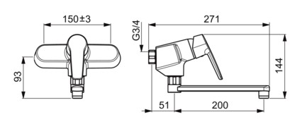 Vægarmatur med svingtud (200 mm). Mulighed for begrænsning af temperatur og vandmængde. |