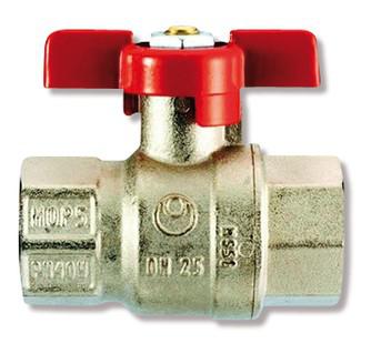 Kraftig kuglehane med fuldt gennemløb. TEA overfladebehandling. Muffe/muffe. Rødt T-greb.