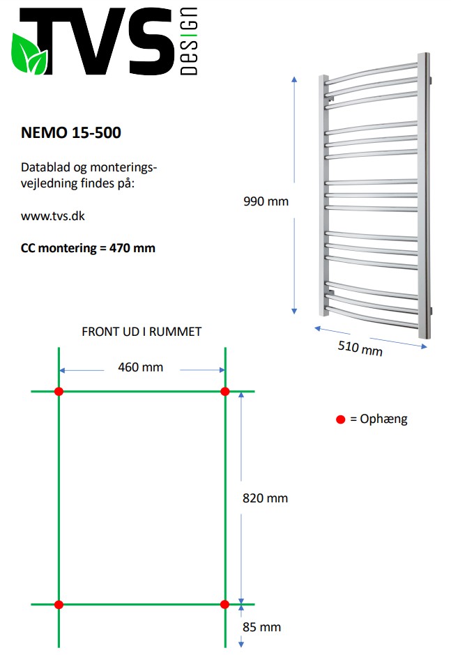 TVS Nemo 15 håndklædetørrer - 51x99 cm - HvidTVS Nemo 15 håndklædetørrer - 51x99 cm - Hvid