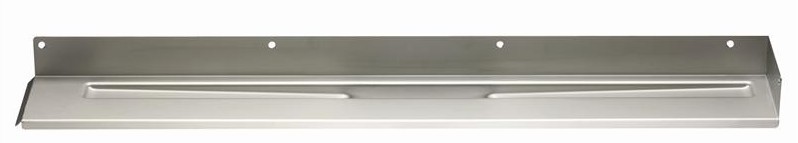 Afløbsarmaturet har to vægflanger og to gulvflanger, og er formgivet ud af et stykke kraftigt 1,5 mm rustfrit stål med bejdset overfladefinish.