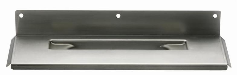 Afløbsarmaturet har en vægflange og tre gulvflanger, og er formgivet ud af et stykke kraftigt 1,5 mm rustfrit stål med bejdset overfladefinish.