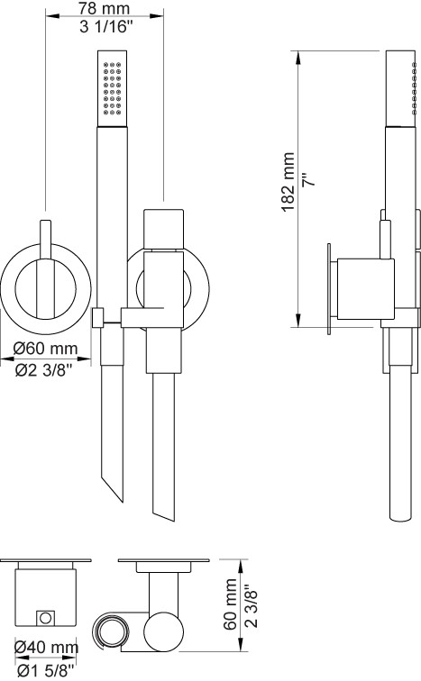 Vola 171 Bruserbatteri inkl. håndbruser og rosetter - krom.