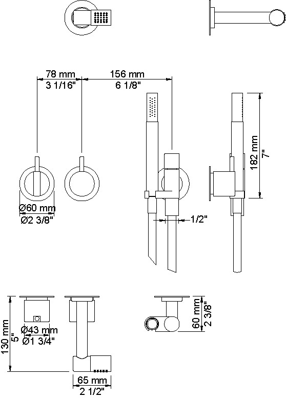 Vola 2471-081 Armatur m/hovedbruser og håndbruser - Krom