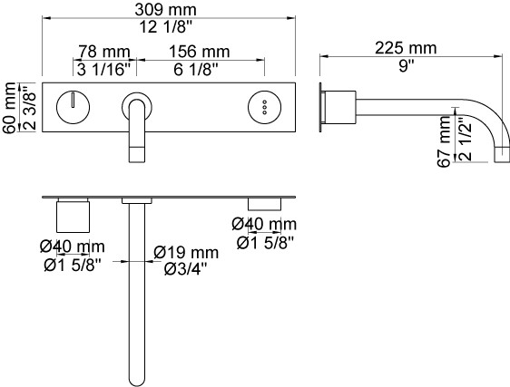 Vola Indbygningsblander til berøringsfri betjening Dækplade Krom 16 ½''RG