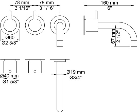 To-grebsblander med keramiske ventiler 600, 2 greb NR17, 160 mm fast tud 010 med vandbesparende luftindblander, 3 stk. 60 mm dækroset 001.